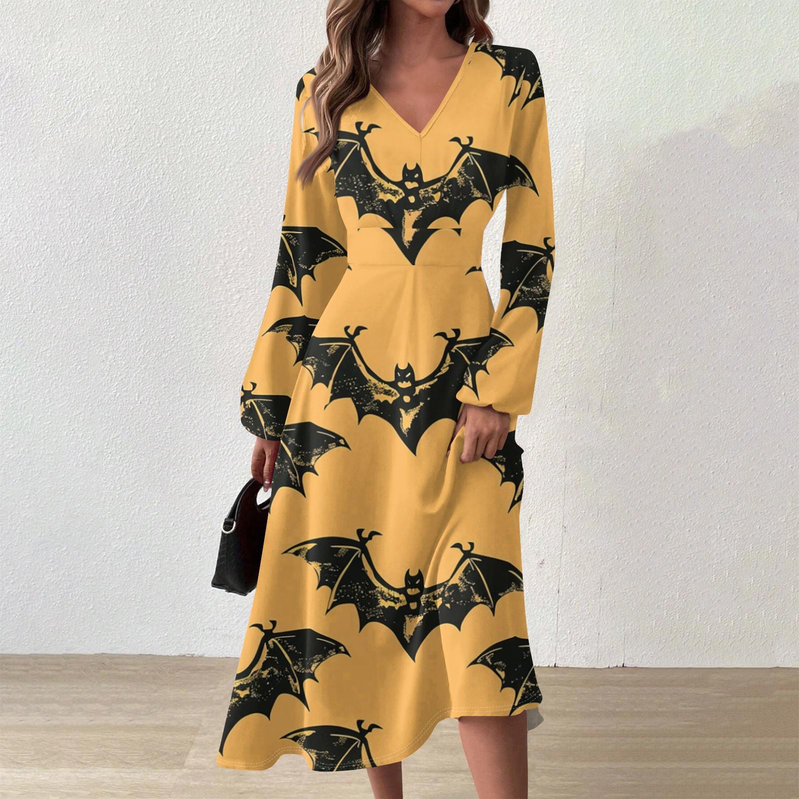 Женское осенне-зимнее повседневное модное длинное платье с v-образным вырезом и длинным рукавом с принтом L оранжевый