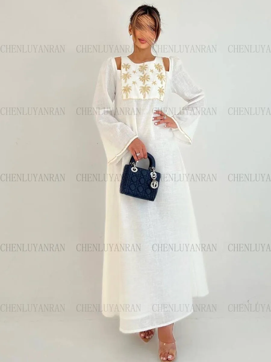 Женское официальное платье, модель 2023 года, Модное Длинное Платье-трапеция, элегантные вечерние юбки с длинным рукавом и круглым вырезом