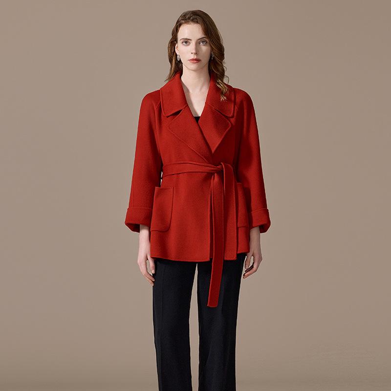 Женское пальто из 100% чистого кашемира двустороннее короткое – Петит, Высококачественное, Свободного кроя для осени/зимы L красный