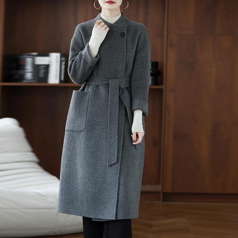 Женское пальто из 100% шерсти, СОВРЕМЕННОЕ НОВОЕ Осеннее шерстяное длинное пальто SAGA, полупальто ручной работы, зимняя теплая шерстяная длинная куртка, пальто L серый