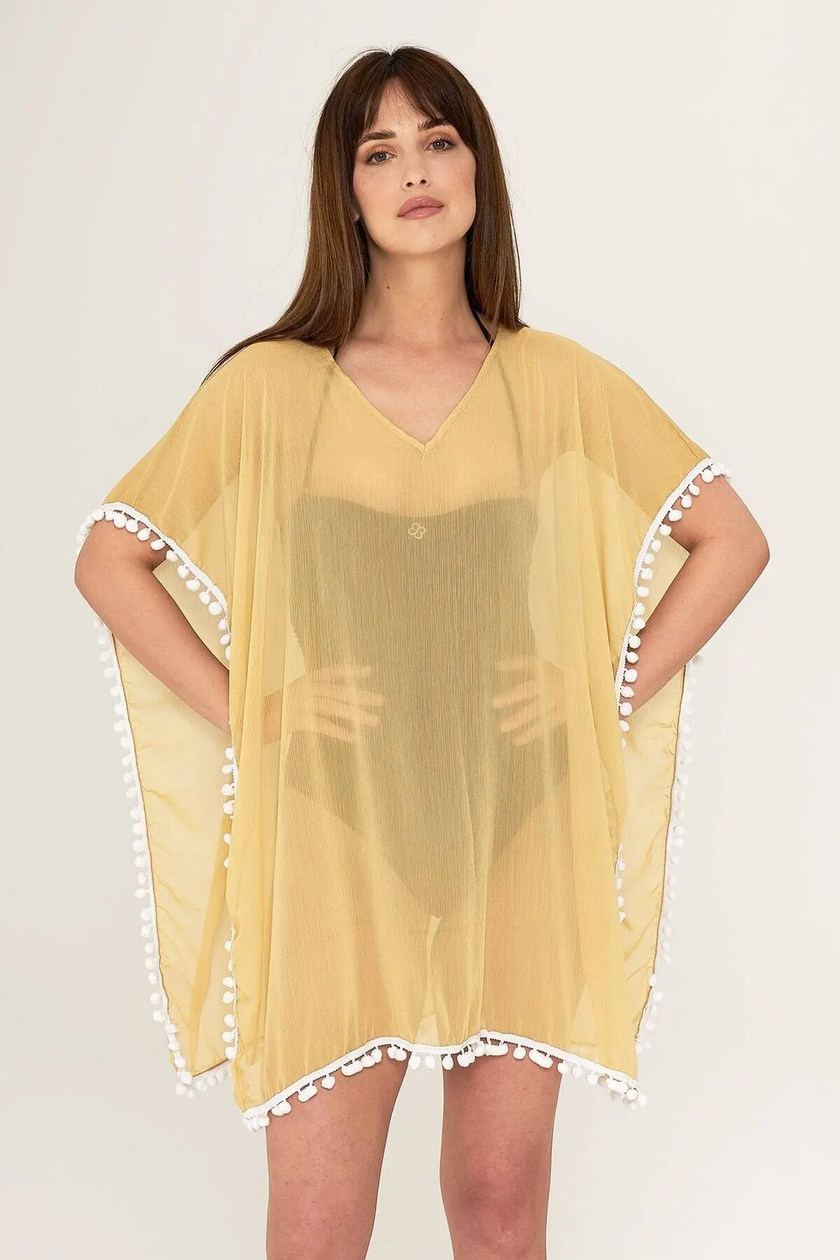 Женское парео желтое Сексуальное пляжное платье с помпоном купальная одежда Обложка Сексуальный Костюм Туника пляжная одежда женский пляж...