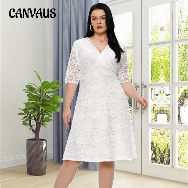 Женское платье Вечерние платья больших размеров Кружевные платья 3XL белый