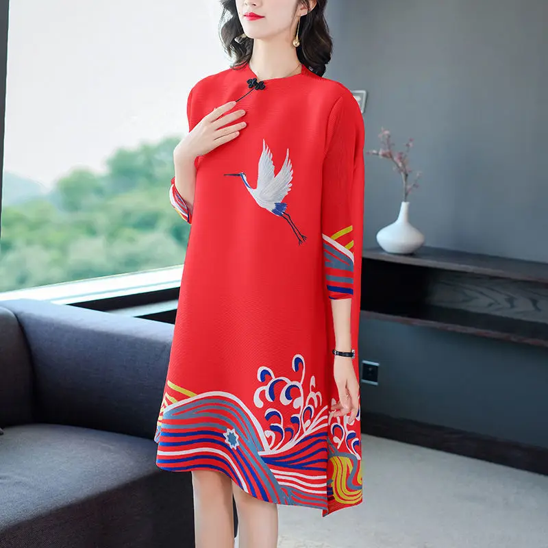 Женское платье-Ципао в стиле ретро, свободное платье большого размера с юбкой типа А, платье для матери, стильная одежда, топы, новинка весны ...