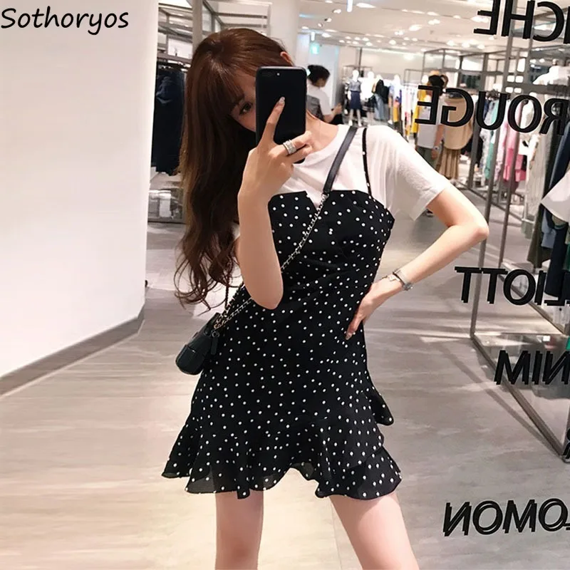 Женское платье без рукавов, в горошек, с оборками и принтом в виде мини Длина модные женские платья все-матч летнее платье A до силуэт на кажд...