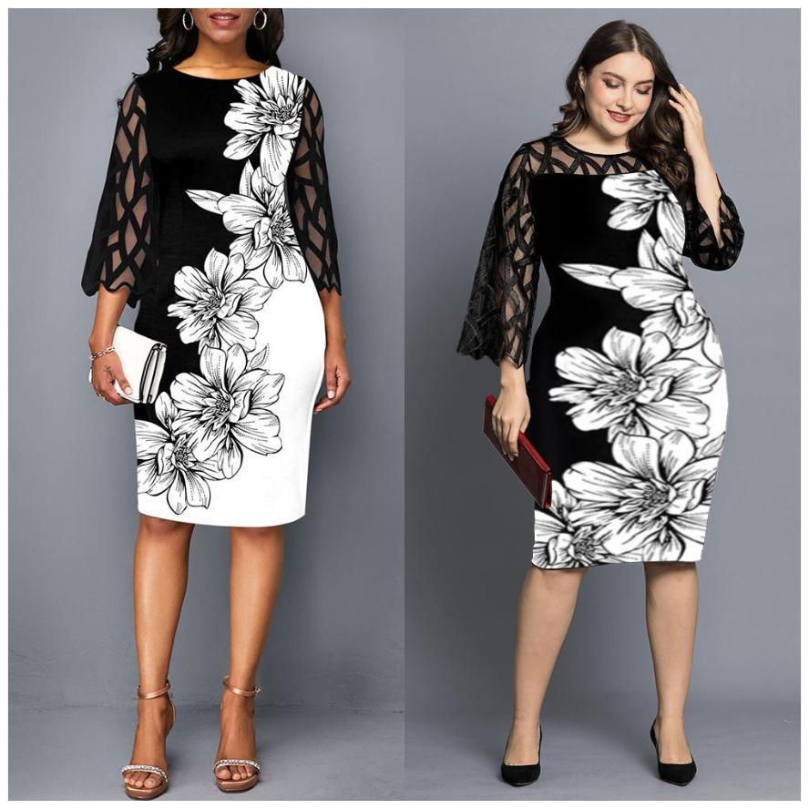 Женское платье больших размеров с кружевными рукавами и цветочной сеткой в стиле пэчворк, повседневное летнее платье до колена L