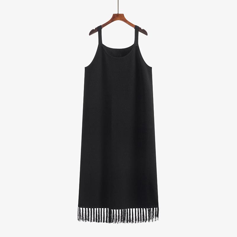Женское платье больших размеров, платье с лямкой на шее, весенние и осенние трикотажные платья с кисточками 3XL чёрный