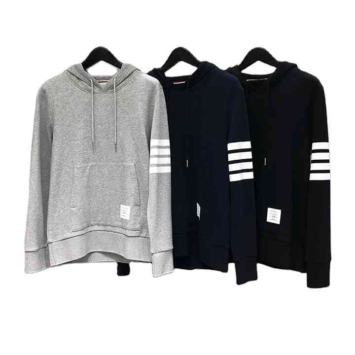 THON 2022 new men's clothing BROWNE TB Sweatshirts Autumn Fashion Brand Pullovers Classic Cotton 4-bar Stripe High Quality Custom Wholesale Men Hoodies, Black
