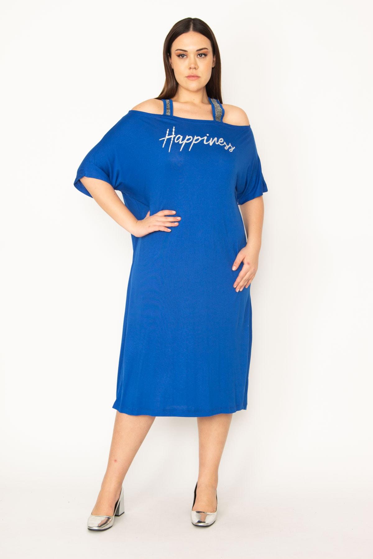 Женское платье большого размера, вискозное платье больших размеров Saks с блестками и детальным принтом спереди XL