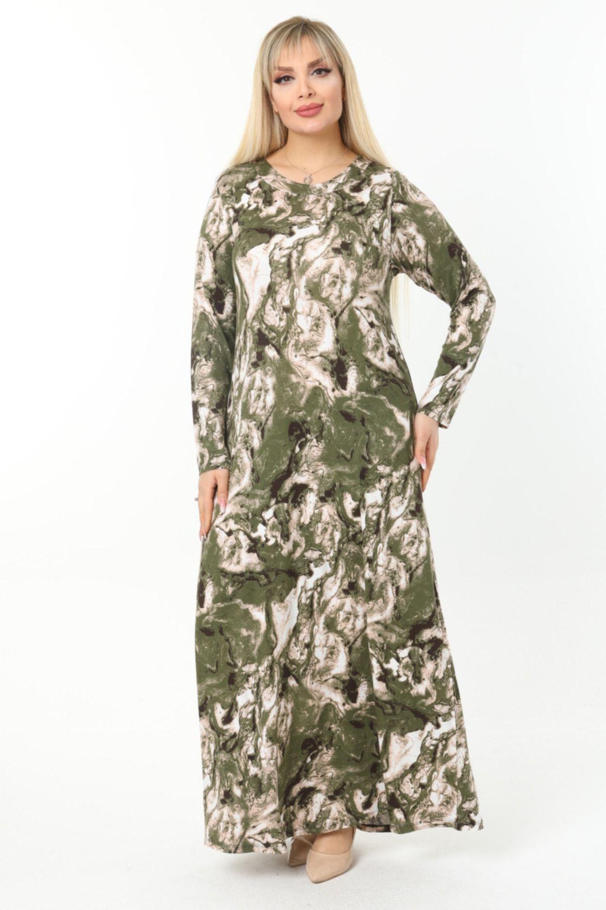 Женское платье большого размера, зеленое длинное платье из вискозы с рисунком батика, длинное платье больших размеров с ребристым воротником 2XL/3XL