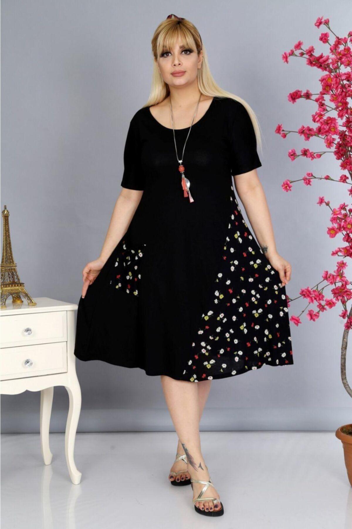 Женское платье большого размера, черное платье больших размеров с короткими рукавами из вискозы и чесаного хлопка с карманами ниже колена 6XL/7XL