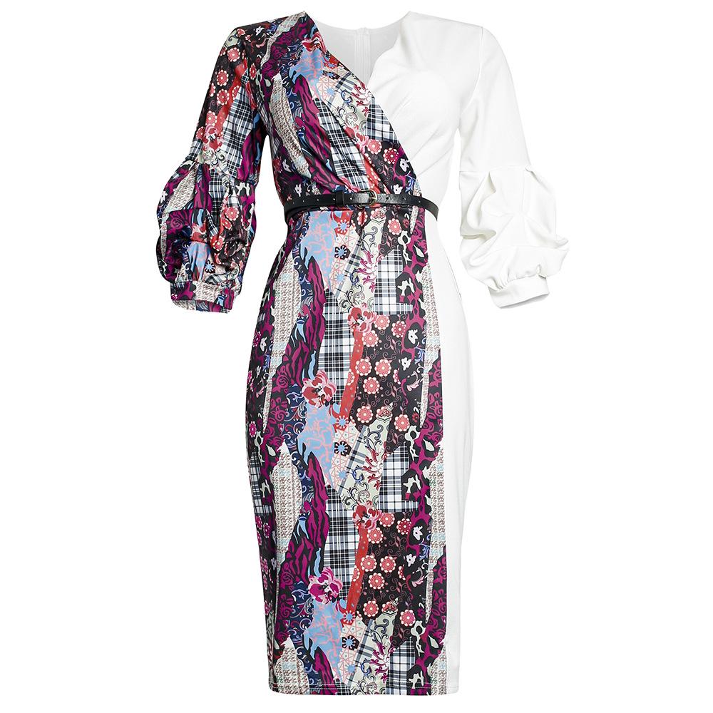 Женское платье большого размера 2022 года с цветными блоками, пэчворком и поясом XL белый