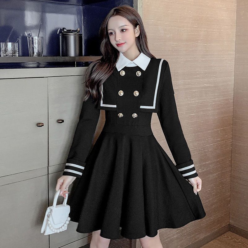 Женское платье весенне-осеннего сезона. Дизайнерское платье Sense. Юбка-трапеция с длинными рукавами и поясом. Утолщенная верхняя юбка из плюша. XL чёрный