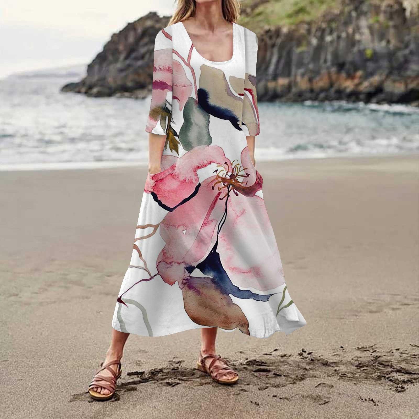 Женское платье весна/лето богемное повседневное модное платье с рукавом 3/4 праздничное большое XL розовый