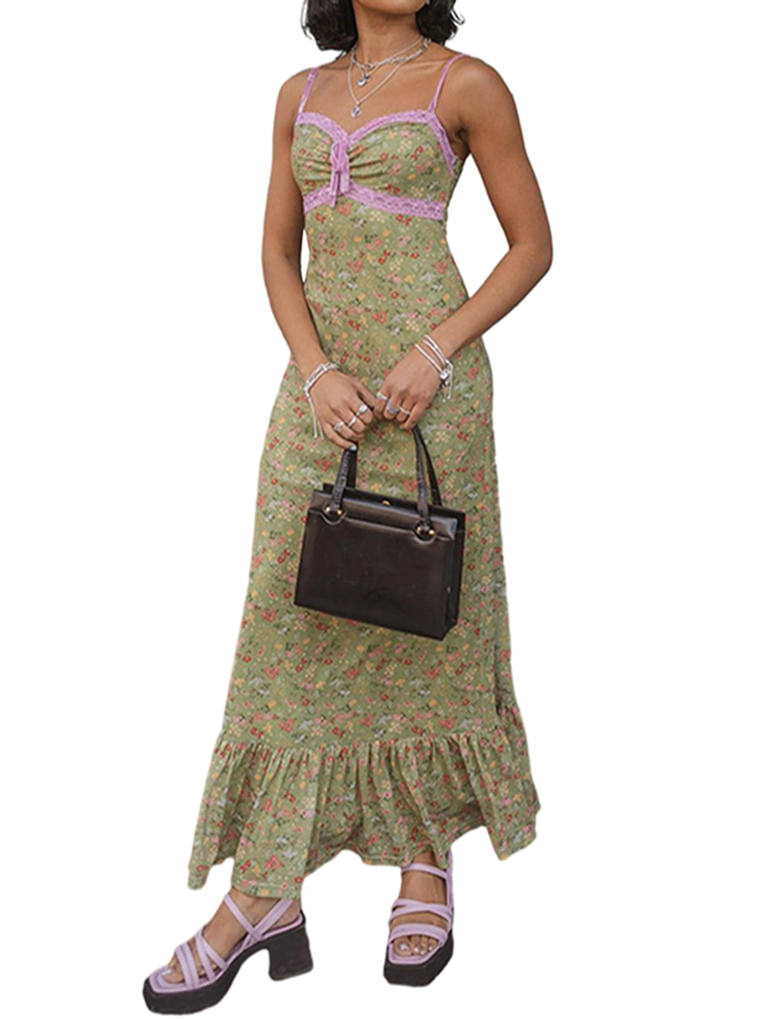 Женское платье в стиле бохо с цветочным принтом, Элегантное летнее праздничное платье с оборками на Подоле и V-образным вырезом для коктейля, Пляжная уличная одежда