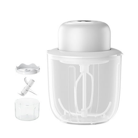 2 in 1 Electric Whisk and Garlic Pounder Cup Kit Food Vegetable Chopper Masher Machine Egg White Cream Mixer (White)