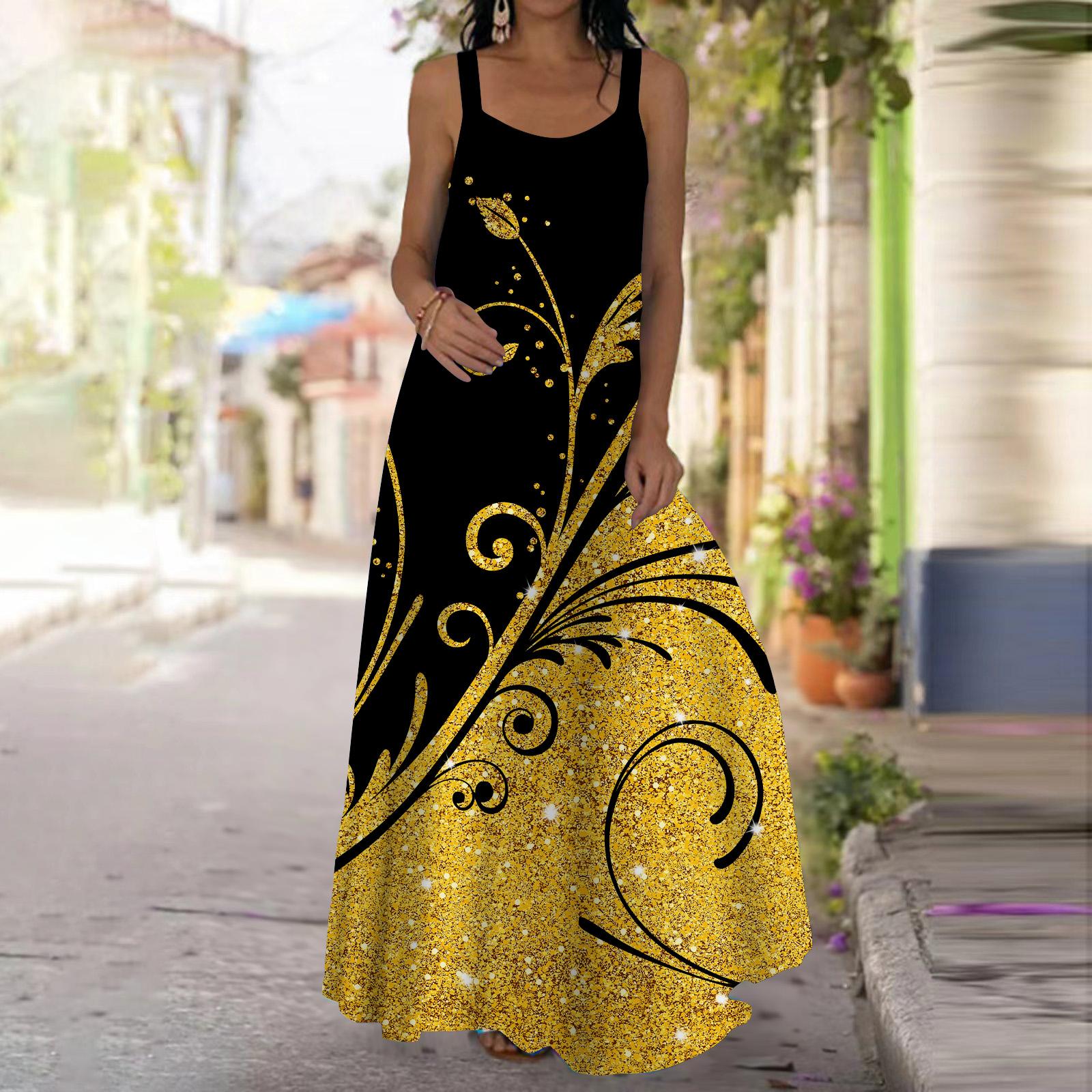 Женское платье-комбинация Длинное платье макси Платье с принтом «Разбитые бриллианты» Весна и лето с V-образным вырезом Для отдыха и отпуска 7XL оранжевый