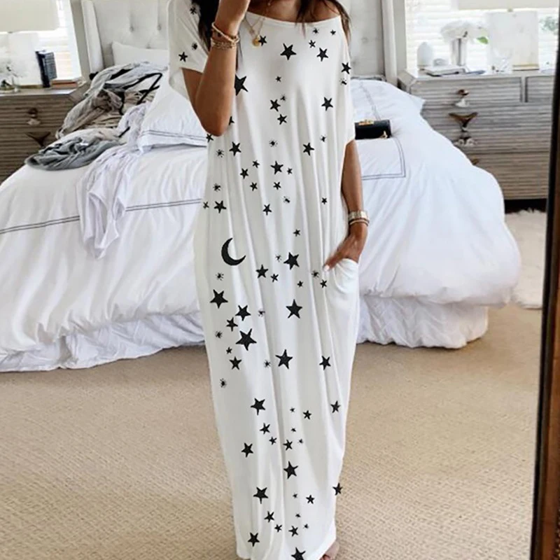 Женское платье-макси с цветочным принтом, асимметричное летнее платье большого размера с коротким рукавом и карманами на плечах, Размеры ...
