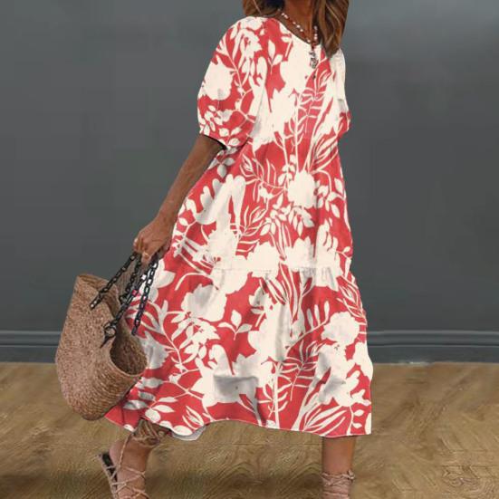 Женское платье-миди Vinatge с цветочным принтом, свободное платье с короткими рукавами и круглым вырезом в стиле пэчворк, мягкое женское длинное платье до середины икры