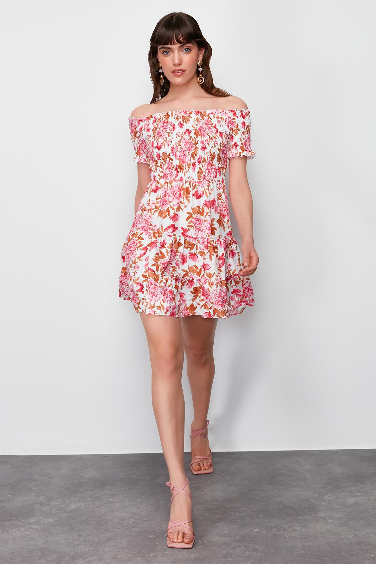 Женское платье, новое сезонное модное мини-тканое платье с розовым цветочным узором и детальной юбкой Gype, открывающейся на талии S болюс