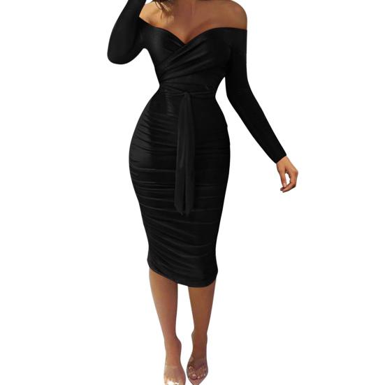 Женское платье однотонное с открытыми плечами V-образным вырезом приталенное платье-футляр S