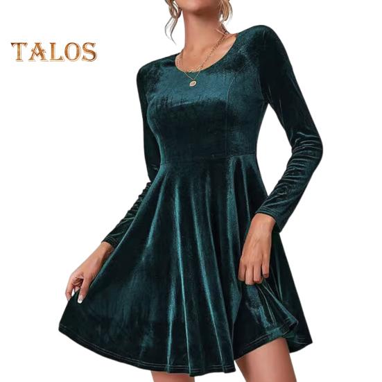 Женское платье осень-весна с круглым вырезом, А-силуэта, большой размер, однотонное, с длинными рукавами, из бархатной ткани, длиной выше колена, короткое платье для свиданий, выпускных вечеринок S зелёный