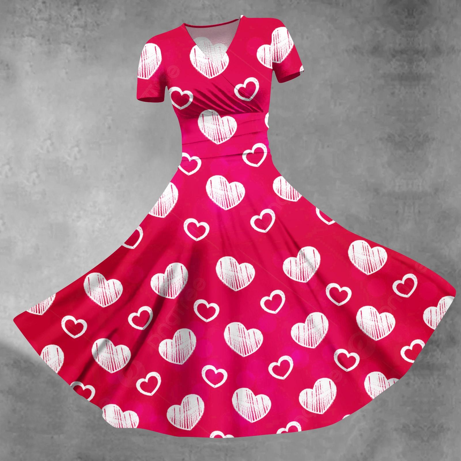 Женское платье принцессы, сексуальное плиссированное платье с короткими рукавами и v-образным вырезом на день святого Валентина, с принтом на талии S