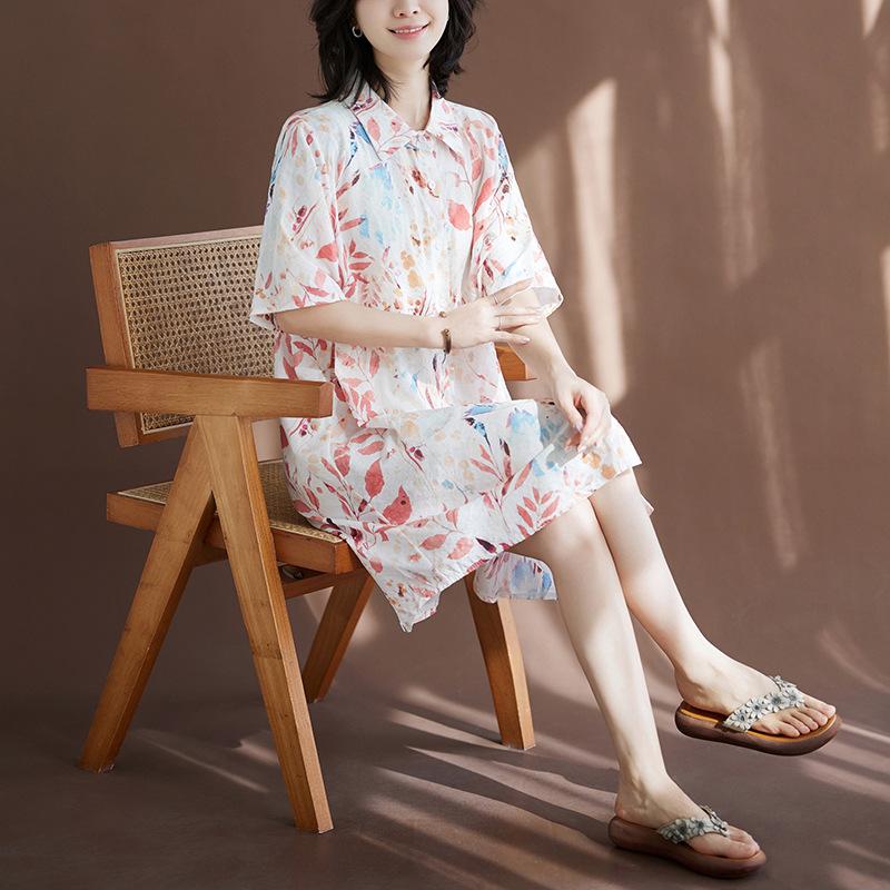 Женское платье-рубашка больших размеров, льняное свежее литературное воротник, рубашка с нестандартными рюшами One Size