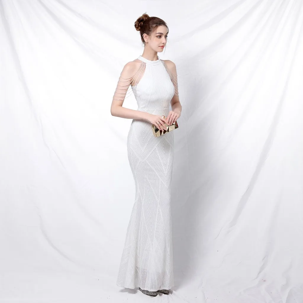 Женское платье-русалка без рукавов, Элегантное Длинное Вечернее Платье с лямкой на шее, бахромой и блестками, бальное платье до пола для вып...