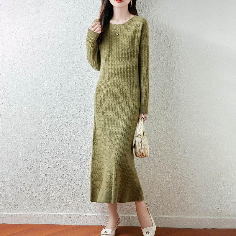 Женское платье-свитер 100% шерсть TIDENOVEL с круглым вырезом вязаный длинный пуловер зимние джемперы шерстяное длинное платье женское 2XL зелёный