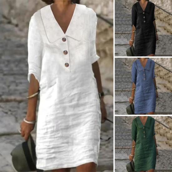 Описание: Женское летнее платье с большим лацканом, V-образным вырезом, коротким рукавом и вырезом на пуговицах, которое может показать ваше простое и повседневное очарование и сделать вас центром внимания коллег. Вы получите модный уличный образ, если соедините это однотонное платье с туфлями на плоской доске и модной сумочкой. Летнее платье изготовлено из льняного материала премиум-класса, который легкий, мягкий и удобный в носке. Есть несколько размеров на ваш выбор, включая M, L, XL, 2XL, 3XL. Подходит для большинства мероприятий, таких как повседневная повседневная одежда, на открытом воздухе, коктейль, вечеринка, праздник, свадьба, клуб, отпуск, пляж и т. Д. Имя элемента: Женское платье Материал: Хлопковое белье Стиль: Повседневная Пол: женщины Тип размера: Обычный Тип воротника: Лацкан Тип шеи: V-образный вырез Тип рукава: Короткий рукав Сезон: Летом Длина платья: Длина колена Характеристики: Свободная посадка, сплошной цвет, тонкий Детали размера: Размер: M, бюст: 100см, Длина платья: 100 см, плечо: 40 см, бедра: 110см, Талия: 100 см, рукав: 35см(Прибл.) Размер: L, бюст: 105см, Длина платья: 101 см, плечо: 41 см, бедра: 115см, Талия: 105 см, рукав: 35,5 см(Прибл.) Размер: XL, бюст: 110см, Длина платья: 102 см, плечо: 42cm, Бедро: 120см, Талия: 110 см, рукав: 36см(Прибл.) Размер: 2XL, бюст: 115см, Длина платья: 103 см, плечо: 43cm, Бедро: 125cm, Талия: 115см, Рукав: 36,5 см(Прибл.) Размер: 3XL, бюст: 120см, Длина платья: 104 см, плечо: 44cm, Бедро: 130 см, талия: 120 см, рукав: 37см(Прибл.) Заметки: Пожалуйста, обратитесь к нашей таблице размеров и выберите правильный размер. Из-за разницы в освещении и настройках экрана цвет элемента может немного отличаться от изображения. В коплект входит: 1 х Женское платье