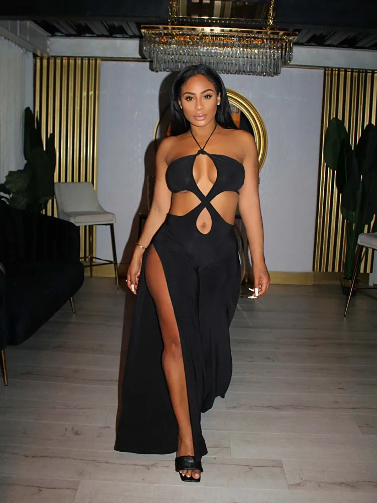 Женское платье с вырезами, сексуальные Макси-платья с открытой спиной, платье с лямкой на шее, лето 2022, комбинация по бокам, одежда для ночног...