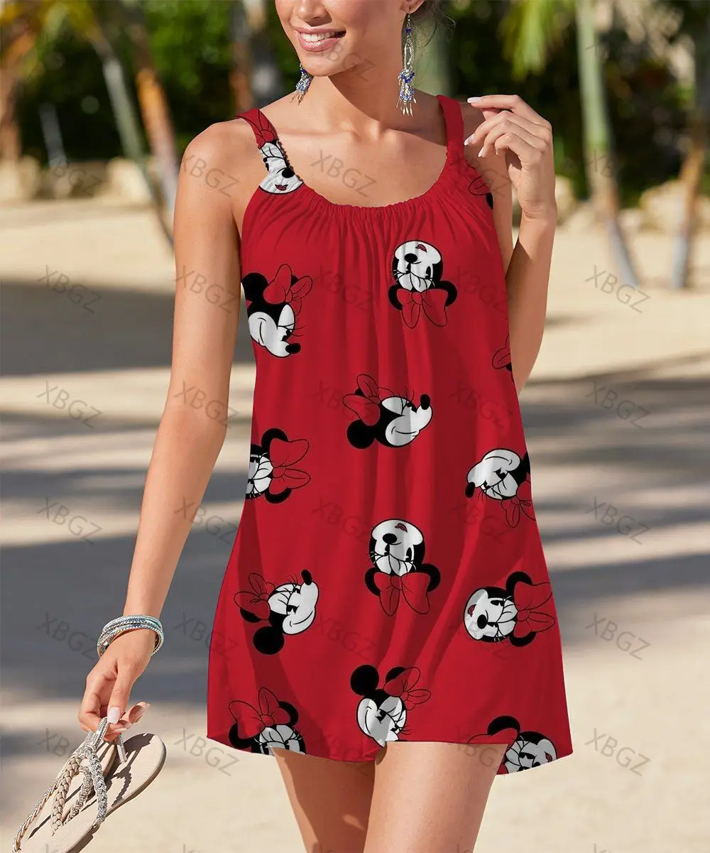 Женское платье с героями мультфильмов, топ с Минни Маус, летние платья для вечеринок, платье с принтом Диснея 2022, Женская пляжная свободная одежда на бретельках в стиле бохо, сексуальная одежда