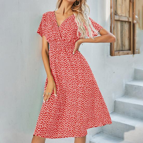 Женское платье с коротким рукавом и v-образным вырезом на талии, плотное дышащее свободное платье, летнее платье из полиэстера с цветочным принтом, женская одежда для женщин