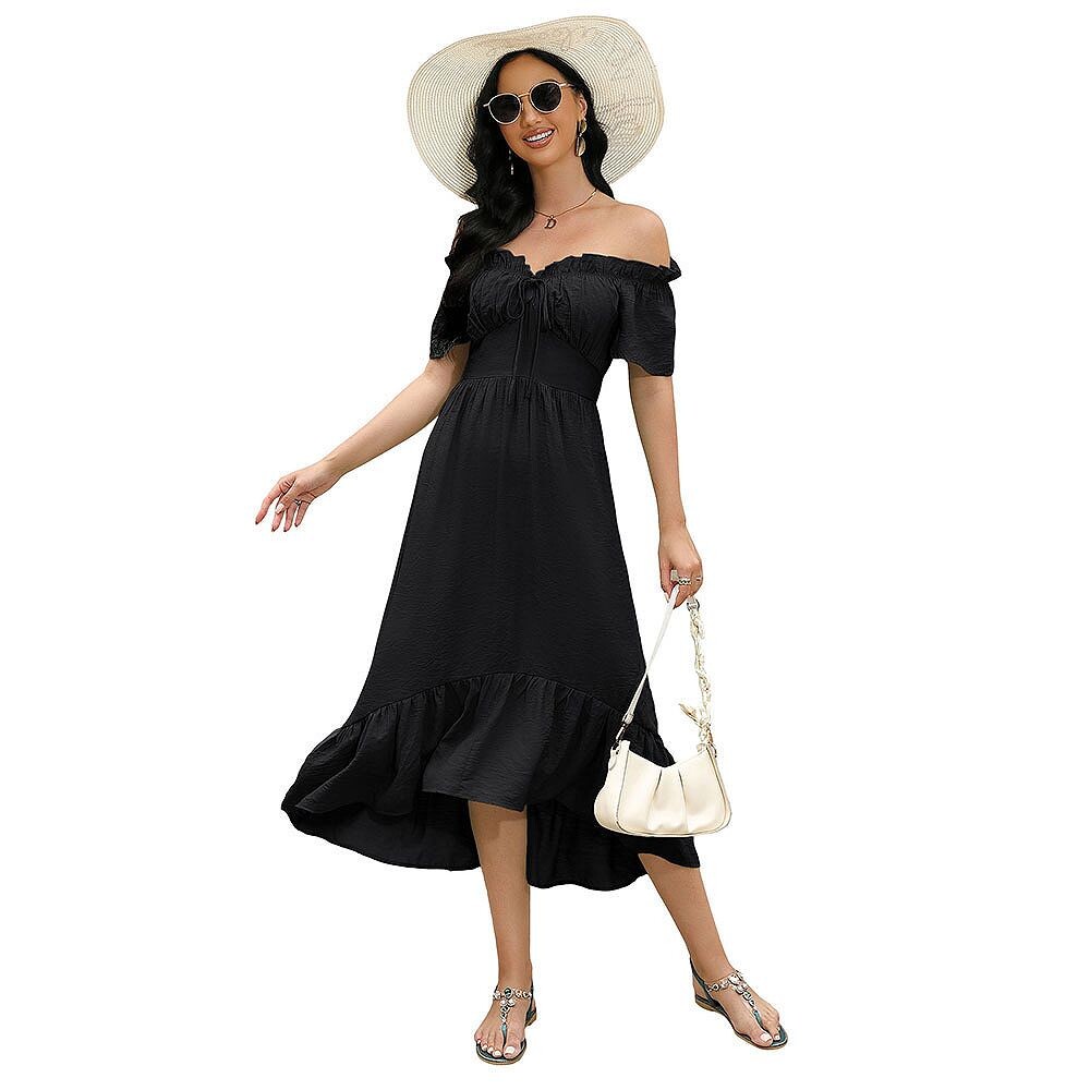 Женское платье с открытыми плечами и коротким рукавом с вырезом в форме сердца, свадебное платье для гостей в стиле бохо, миди Kojooin, черный