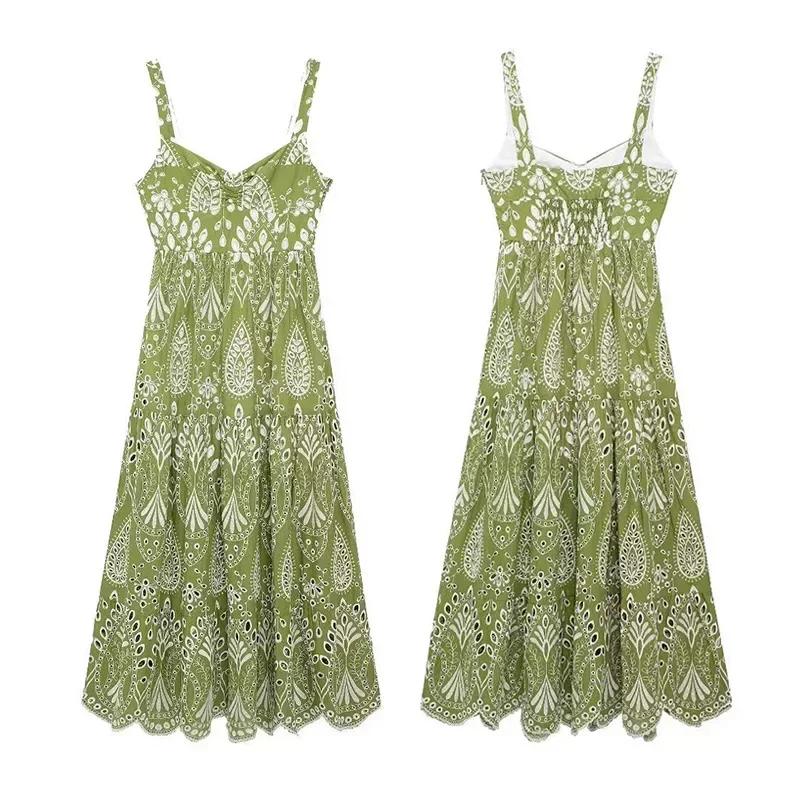 Женское платье с принтом и открытой спиной, элегантное зеленое платье без рукавов с высокой талией, летнее женское пляжное платье L зелёный