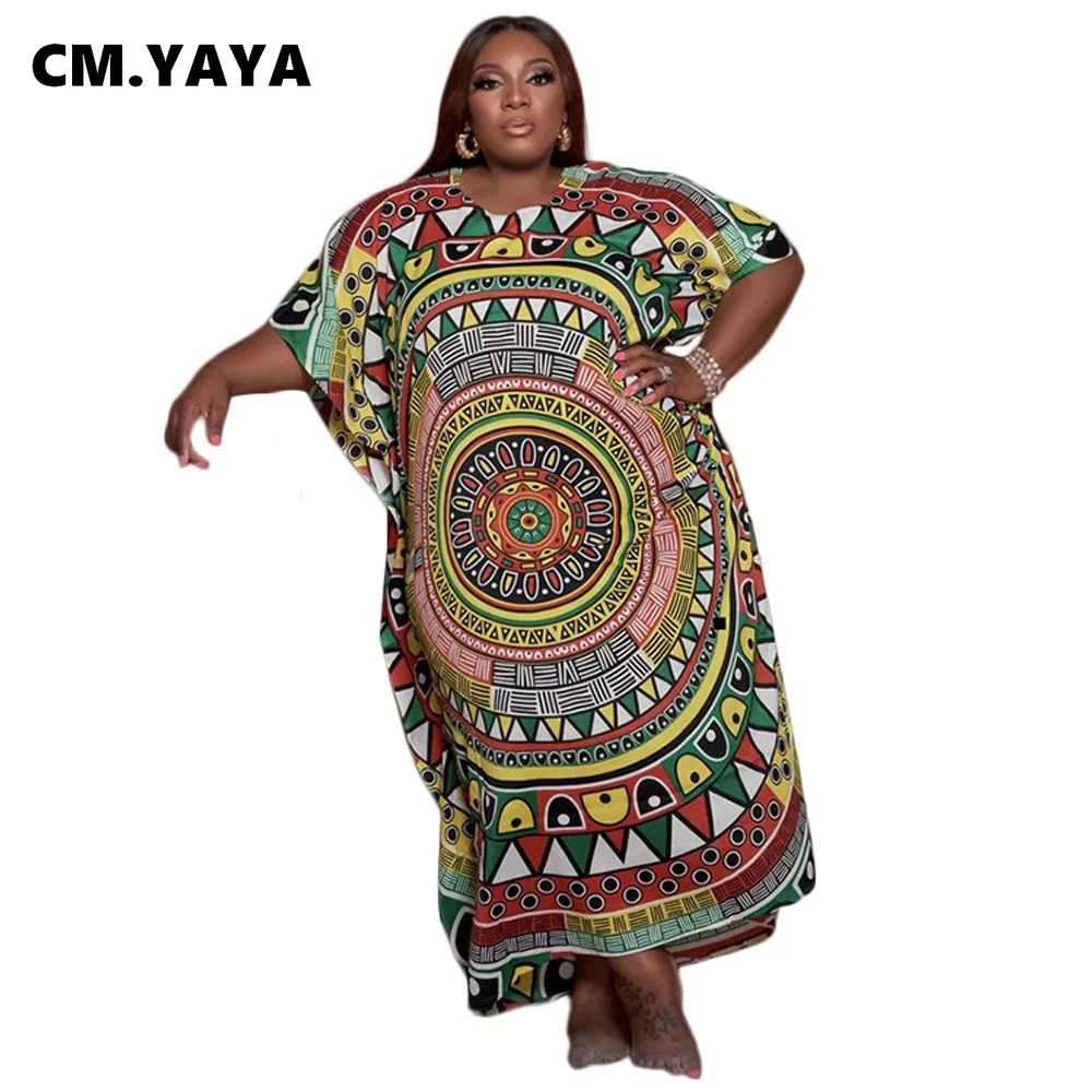 Женское платье с рукавом летучая мышь CM.YAYA, свободное прямое длинное платье большого размера с принтом, модная повседневная одежда, летняя о...