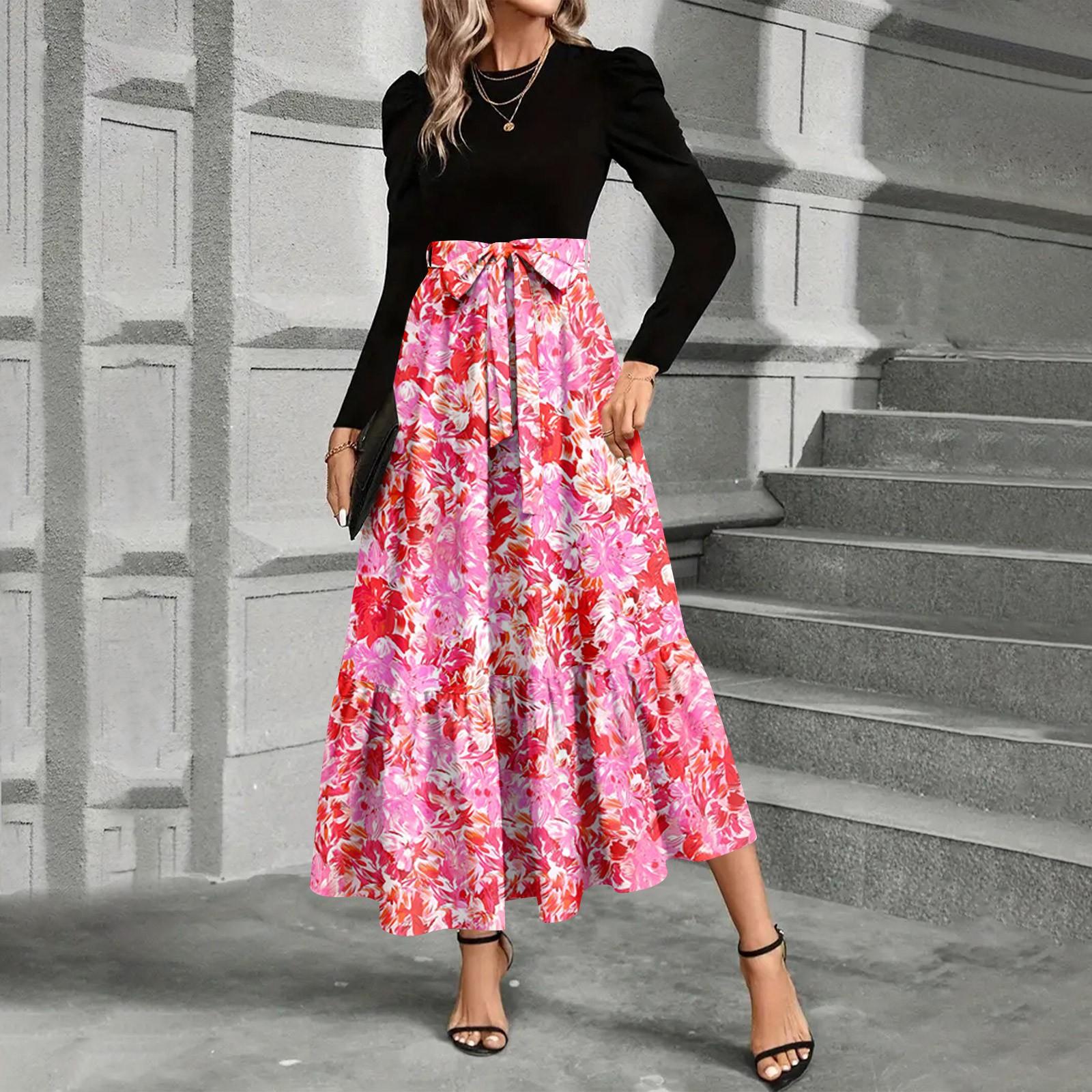 Женское платье с цветочным принтом и высокой талией, модное и элегантное XXL розовый