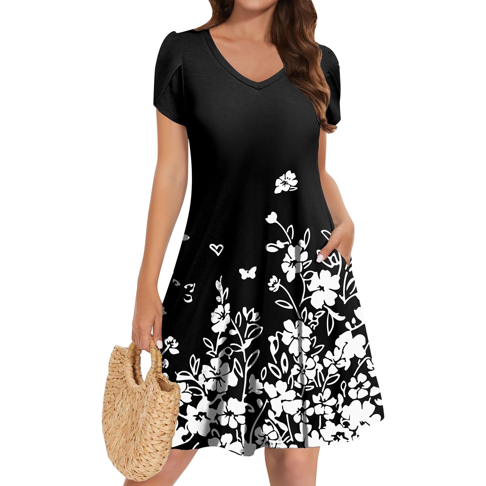 Женское платье с V-образным вырезом, летнее платье с плиссированной резинкой на талии, А-силуэтное платье S белый