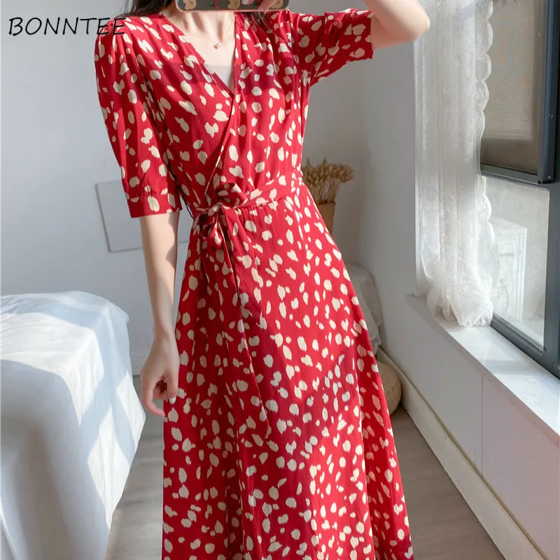 Женское платье с v-образным вырезом, летняя тонкая Шифоновая туника макси с принтом, винтажная Праздничная уличная одежда в стиле ретро во ф...