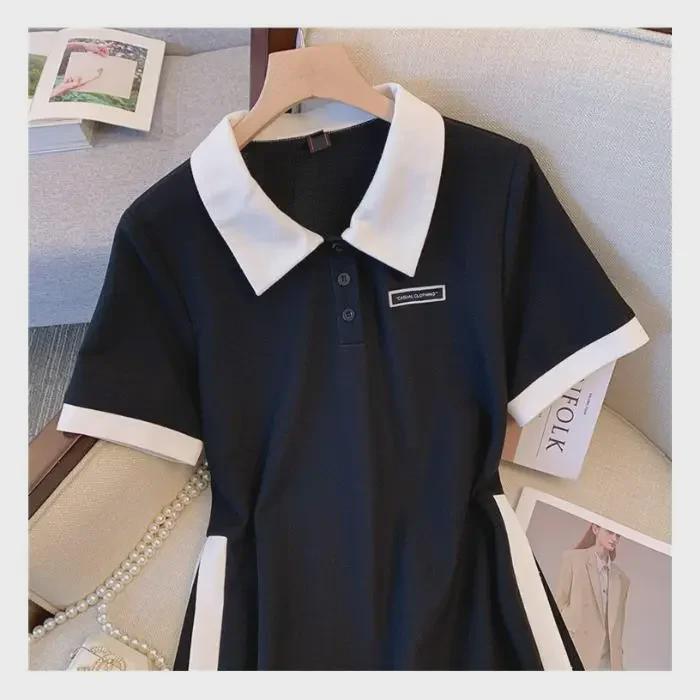 Женское платье-трапеция с воротником-поло больших размеров, летняя мода, облегающий крой, M-5XL L