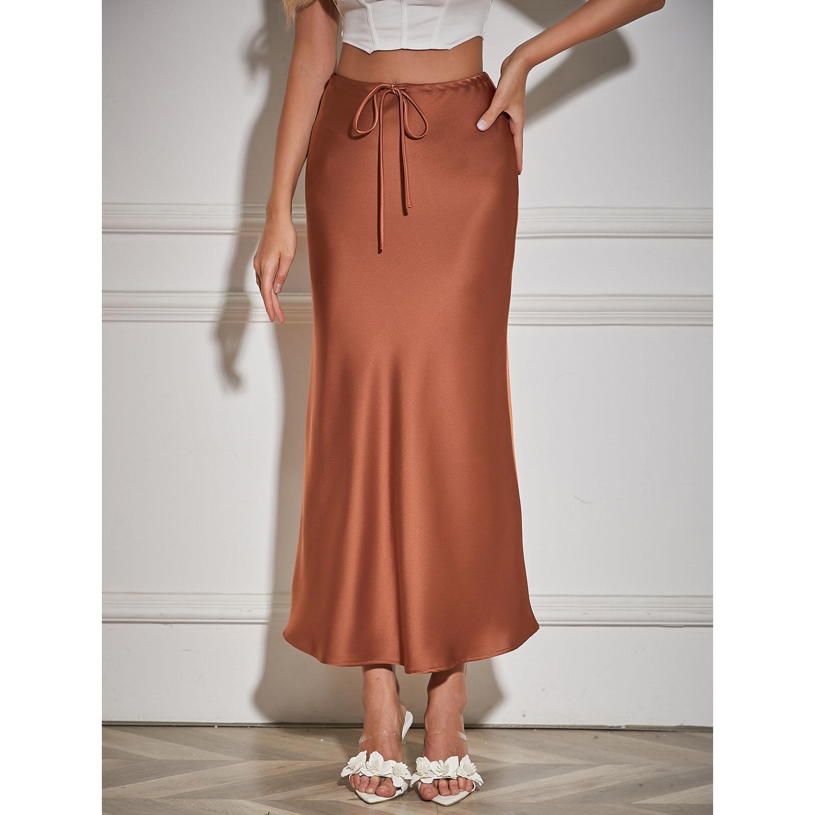 Женское платье-футляр с завязками на бедрах, элегантная шелковая атласная юбка длиной до пола с высокой талией, эластичная юбка длиной до щиколотки, лето-осень, размер плюс