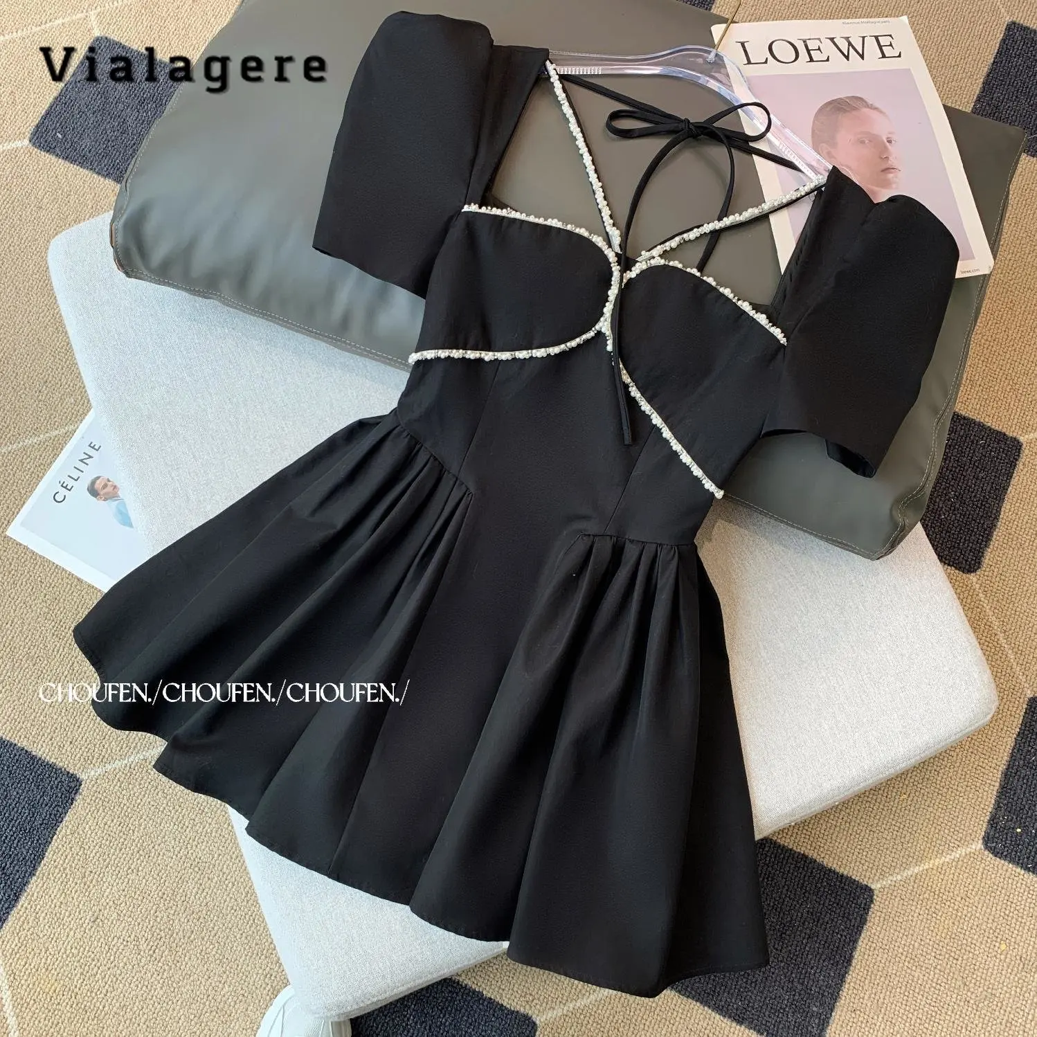 Женское платье-футляр с рукавами-фонариками, черное облегающее пляжное платье в готическом стиле, с перфорацией, на шнуровке, в стиле пэчвор...