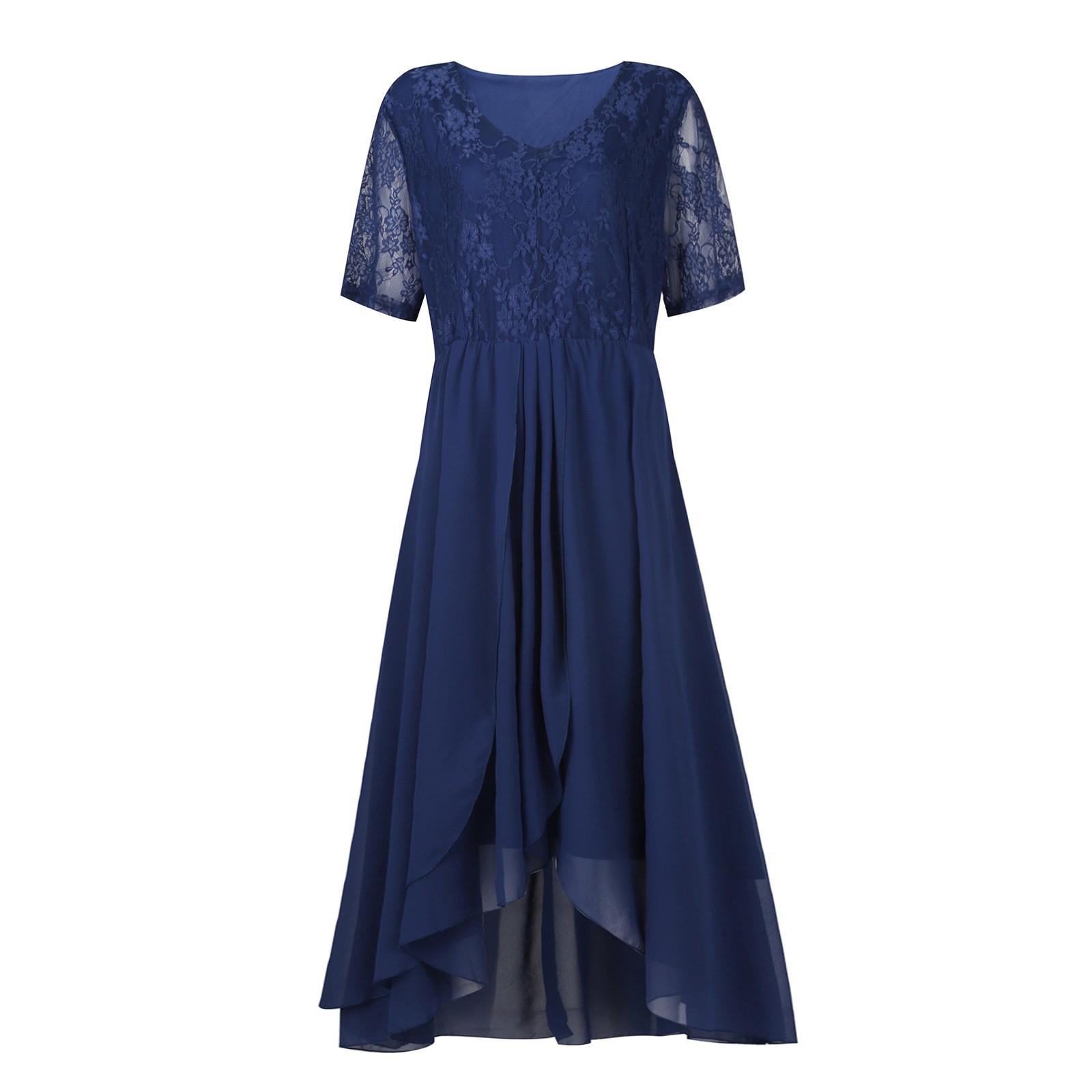 Женское платье шифоновое элегантное кружевное лоскутное платье с вырезом длинное платье вечернее платье подружки невесты XXXL синий