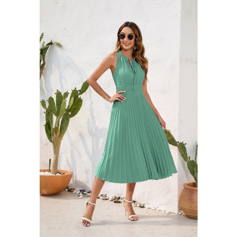 Женское плиссированное бальное платье со шнуровкой и высокой талией, летнее платье без рукавов, повседневное праздничное платье XXL светло-зеленый