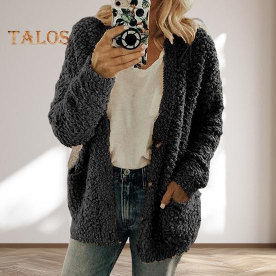 Женское плюшевое пальто с длинными рукавами, однобортная куртка с карманами, однотонное утолщенное теплое плюшевое пальто для повседневной носки на осень-зиму XL темно-серого
