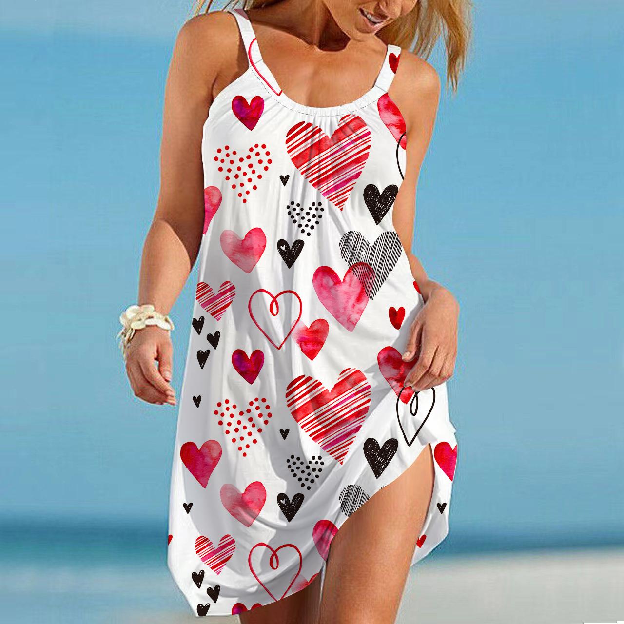 Женское пляжное платье Пляжная одежда Мини-платье с принтом «Love Graffiti» Повседневное современное платье без рукавов Свободный крой Повседневное уличное розовое синее летнее 8XL красный