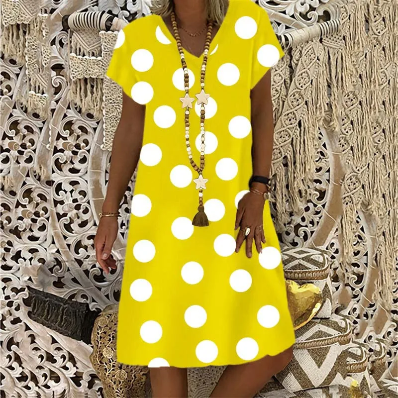Женское пляжное платье в горошек, элегантное прямое свободное платье с V-образным вырезом и коротким рукавом, Одежда для пляжа, лето 2022