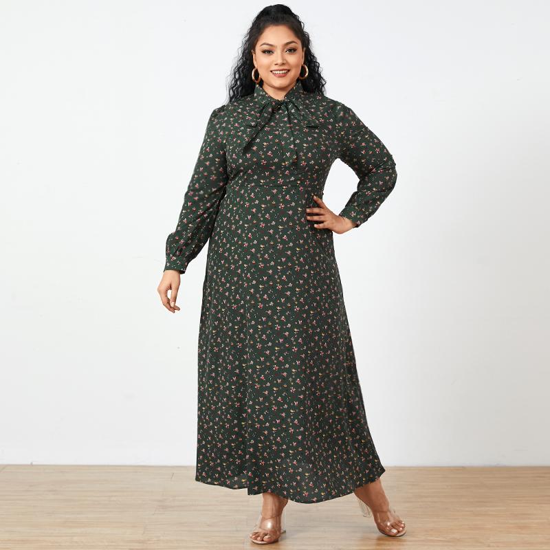 Женское повседневное длинное платье с воротником-бабочкой и цветочным принтом FZH
