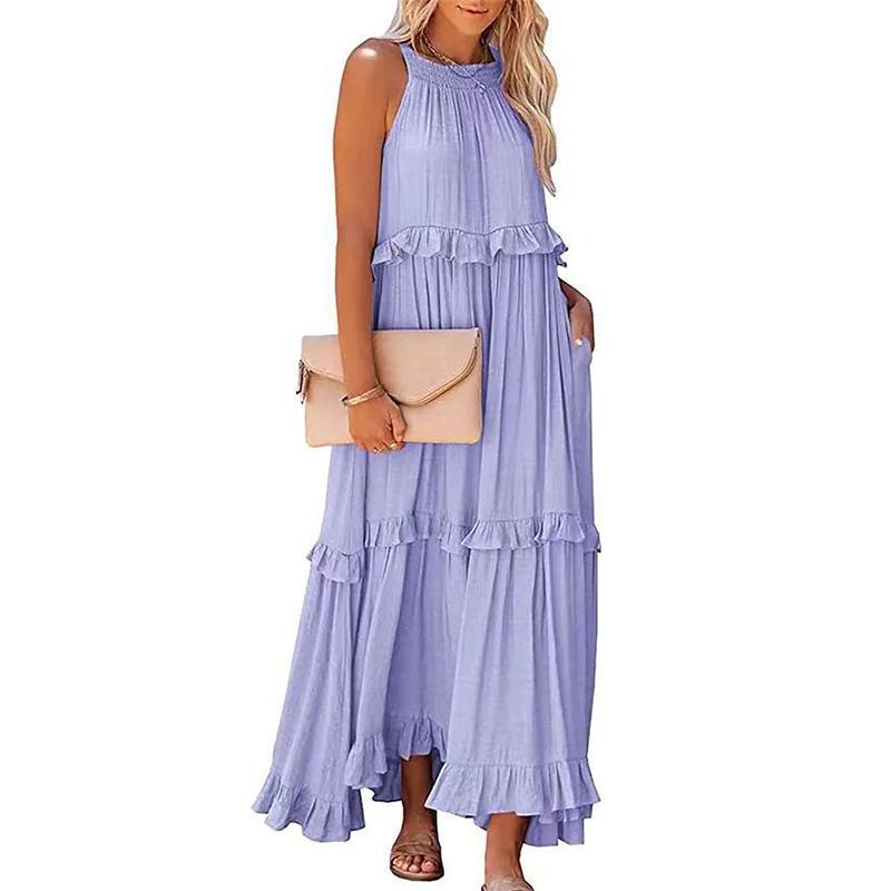 Женское повседневное длинное платье с однотонными оборками, летнее элегантное платье без рукавов, элегантное платье макси в стиле Харадзюку, пляжное вечернее платье L фиолетовый