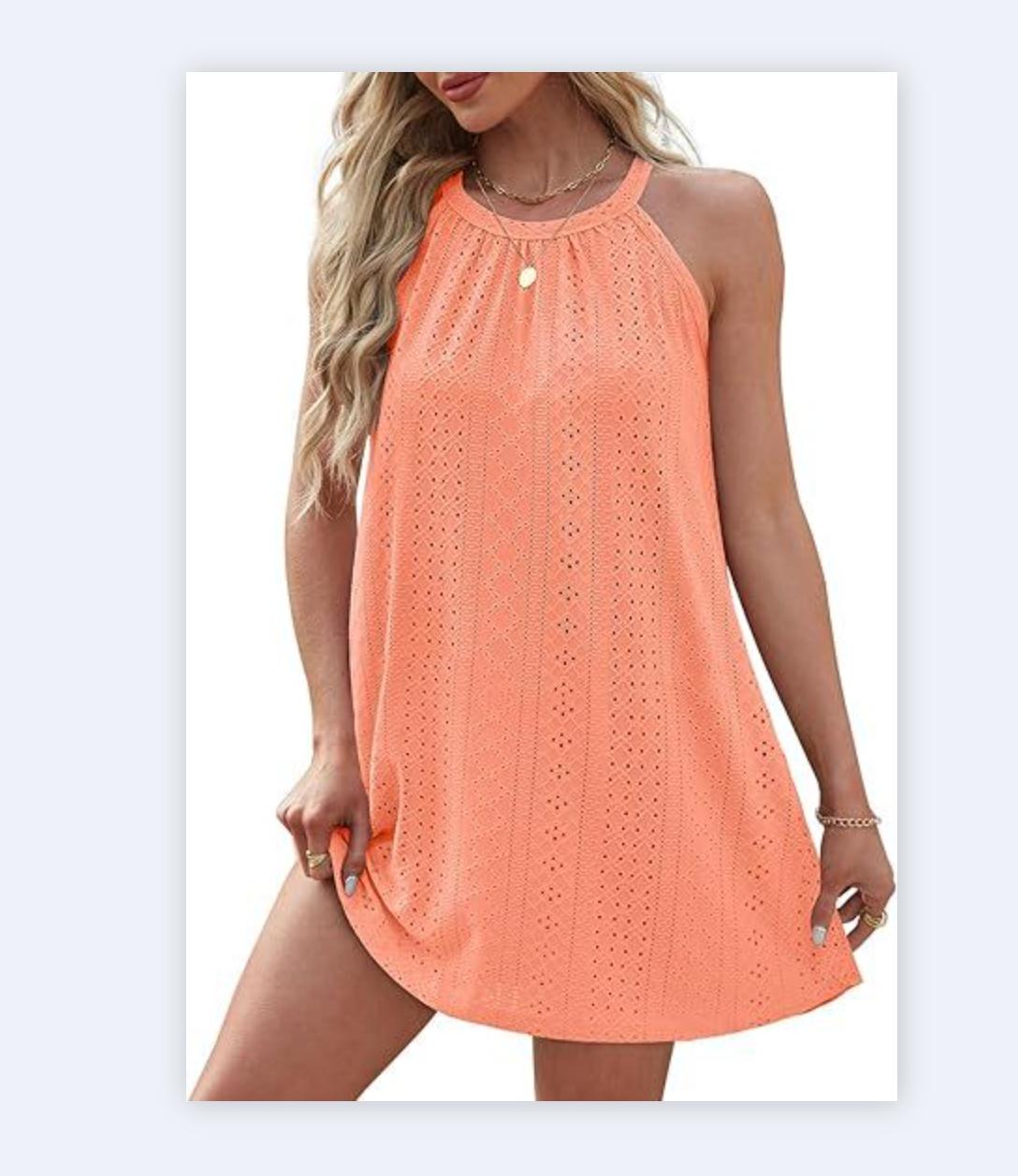 Женское повседневное мини-пляжное платье без рукавов в стиле бохо с бретелькой на шее и сарафаном XXL
